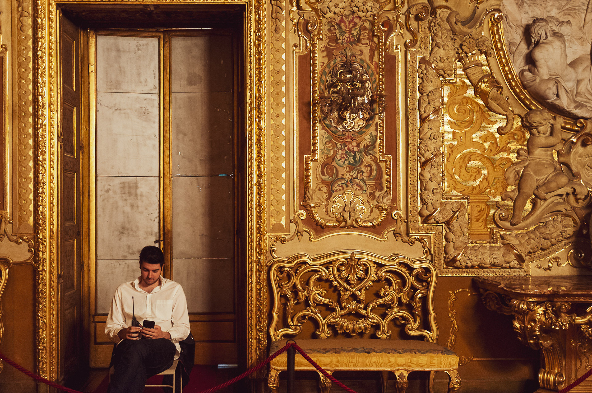 Questa serie è il mio modo di restituire quel dialogo: non la magnificenza del palazzo, ma la sua atmosfera. Le sue ombre calde, i suoi ori che respirano, la sua capacità di trasformare ogni presenza in una piccola storia.