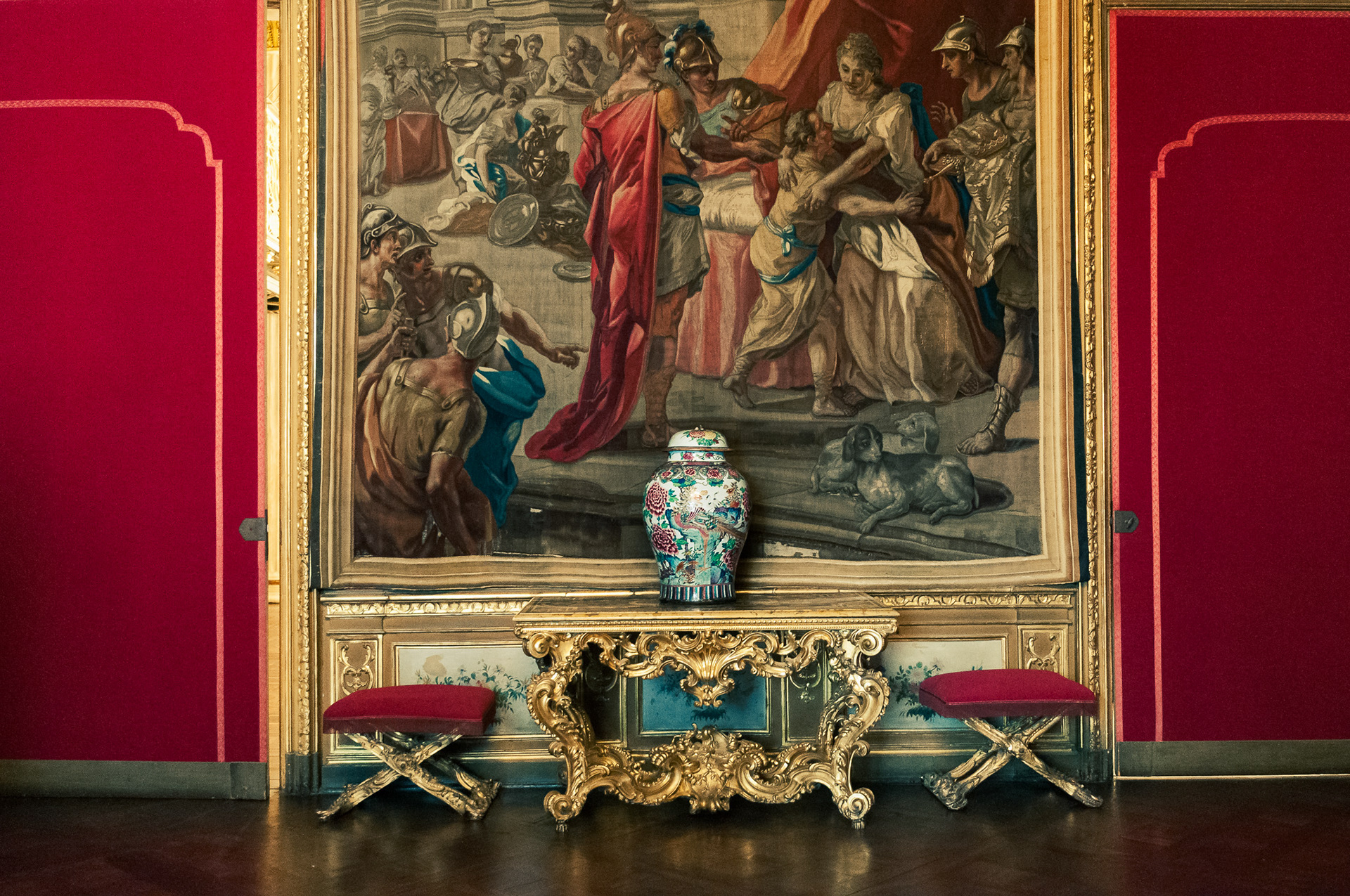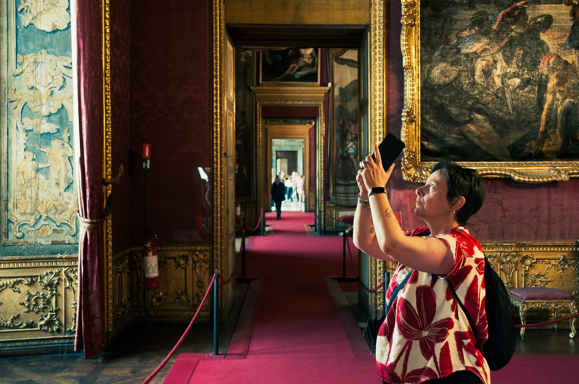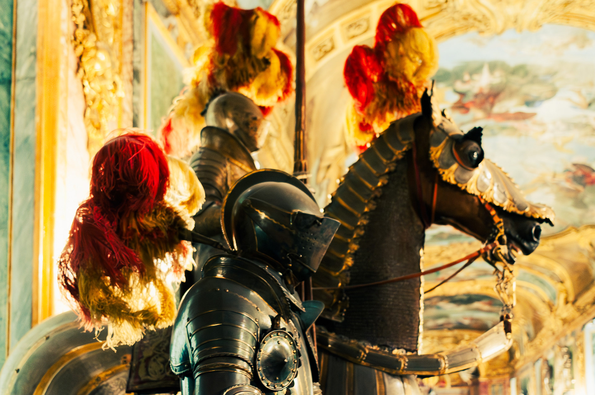 Mi attirano i dettagli: un trono che sembra aspettare qualcuno, un tavolo apparecchiato come se la cena dovesse iniziare da un momento all’altro, un visitatore che si ferma davanti a un quadro, un’armatura che conserva ancora un’eco di movimento. In questi spazi così ricchi, così pieni, io cerco il silenzio: il punto in cui l’occhio si ferma e la scena diventa intima.