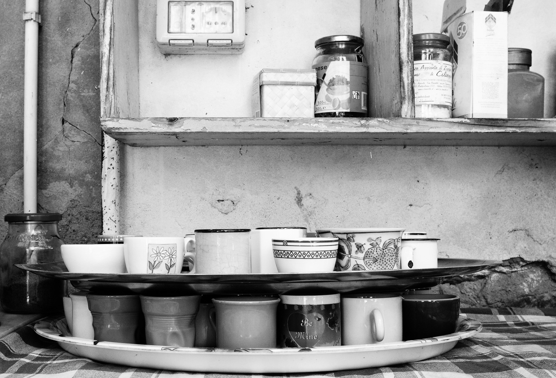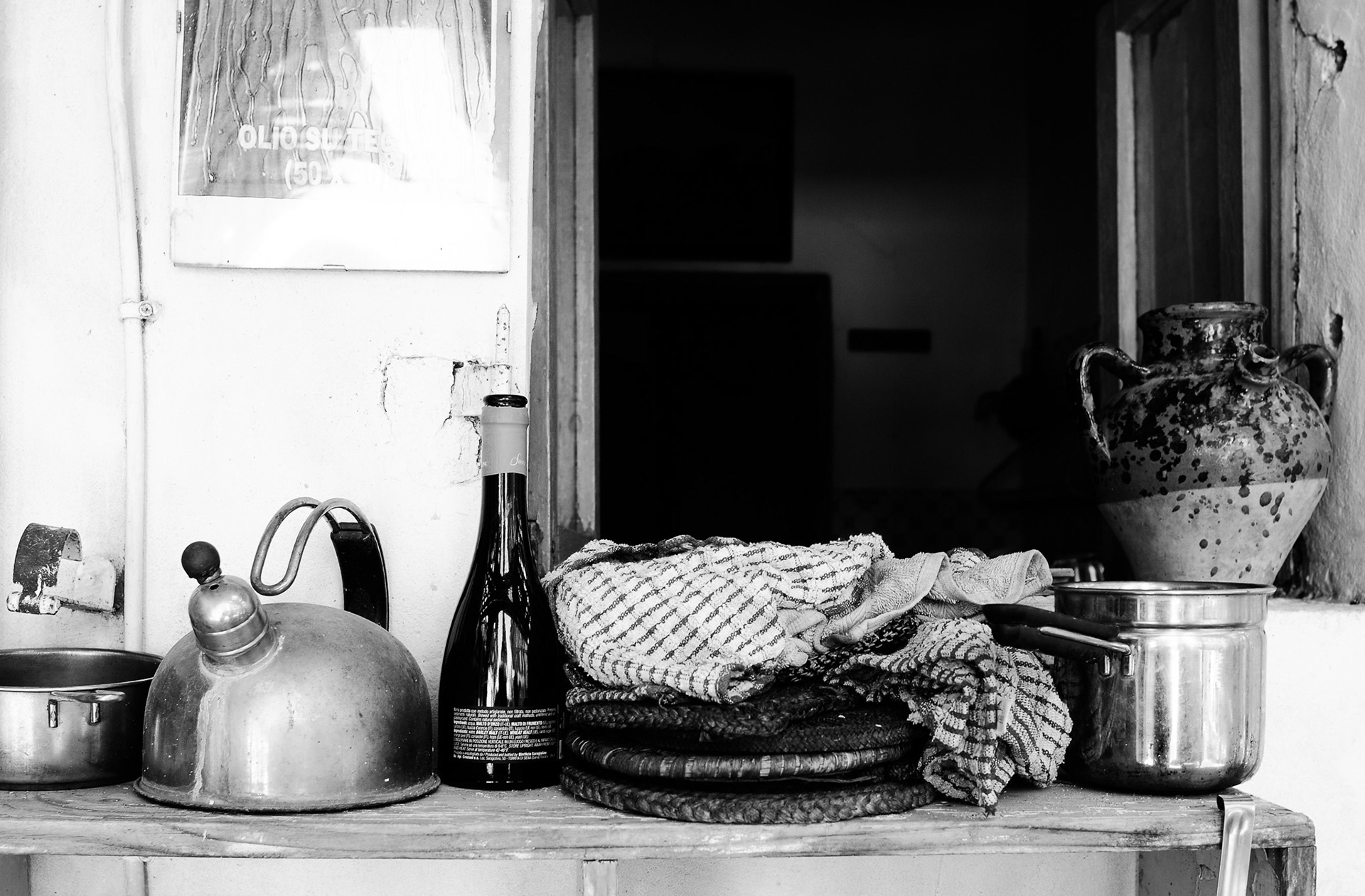 Fotografare il mondo di Dino significa entrare in un modo diverso di stare al mondo: lontano dal comfort, lontano dall’idea contemporanea di “abitare”, vicino invece alla sostanza delle cose. Pentole annerite, tazze spaiate, stufe consumate, utensili riparati, oggetti umili che diventano protagonisti senza volerlo. Non c’è posa, non c’è scenografia: c’è solo la verità di un luogo che vive.